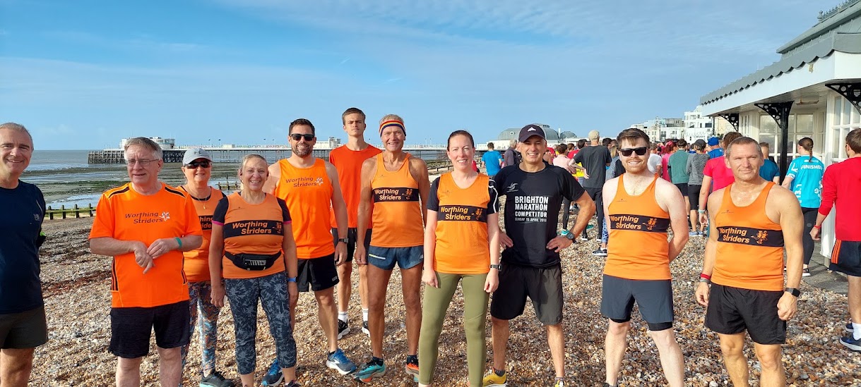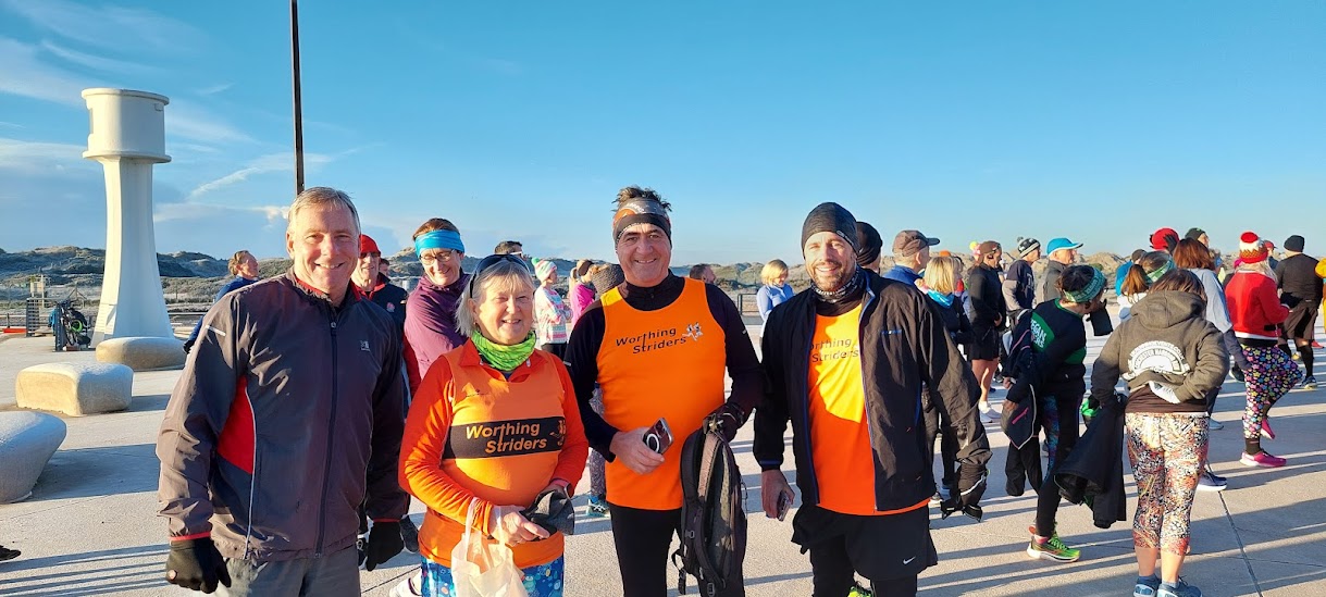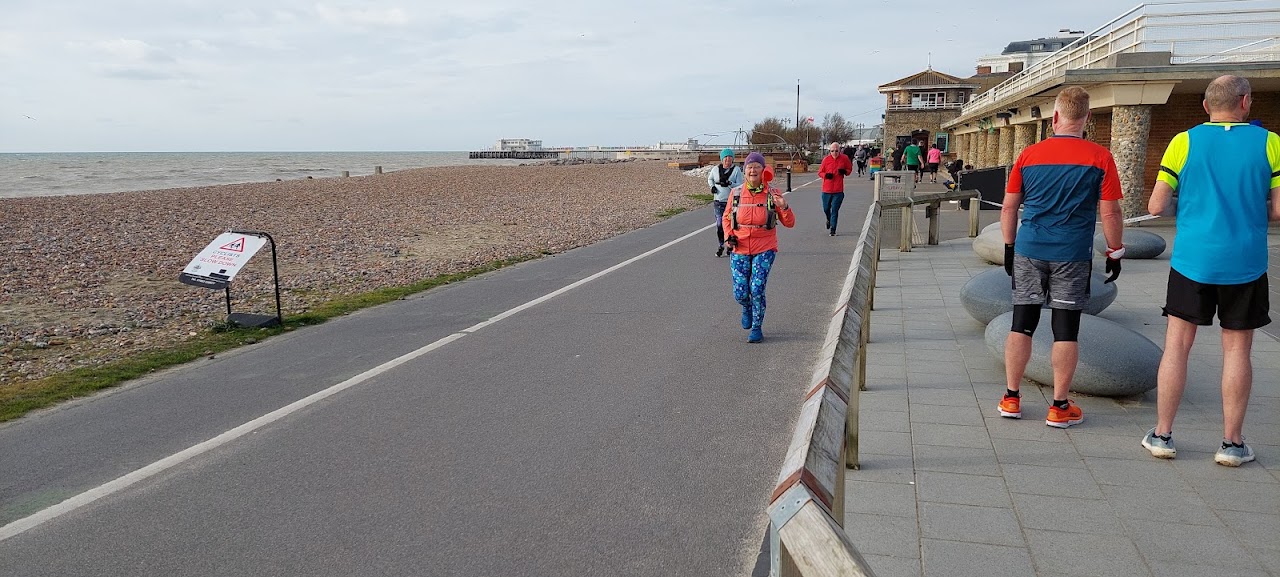 Friday morning shuffle around the seafront and back through smart bungalow-ville of Ferring when a 'pull' occurs in my left groin. I slow down to a walk back for the last mile. That's it for parkrun tomorrow and I promptly volunteer my services to marshal instead. The day is chilly but dry as I take up my position at Worthing Pier to clap and encourage.