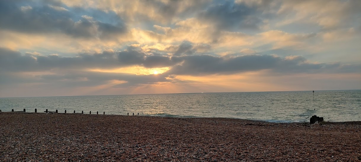 Yes, it's another year and another parkrun. Us, and 465 others turned up for the 9am start in almost brilliant sunshine. A lovely sunrise over a choppy sea bought out the amateur mobile photographers getting the perfect shot or the perfect selfies to mark this special event. We cycled the very flat and traffic-less route to park our bikes adjacent to the finish funnel. Last night was an early New Year's eve with a delicious steak dinner for 2. a bottle of bubbly ( cheap stuff) after starting the evening with a gin & tonic and a fascinating look at the rise and fall of the Woolly Mammoth, according to the David Attenborough, Swindon dig-team ! Sleep was punctuated by the occasional firework and then severely curtailed by some very local 'bangs' at midnight.....hey-ho! But for a few hours later, we were pacing around the bedroom deciding if we would both wear the black '100', was it really 12C outside and should we have a banana first? Back to the parkrun. Toilet stop, warmup and join the throngs on the pebbles.