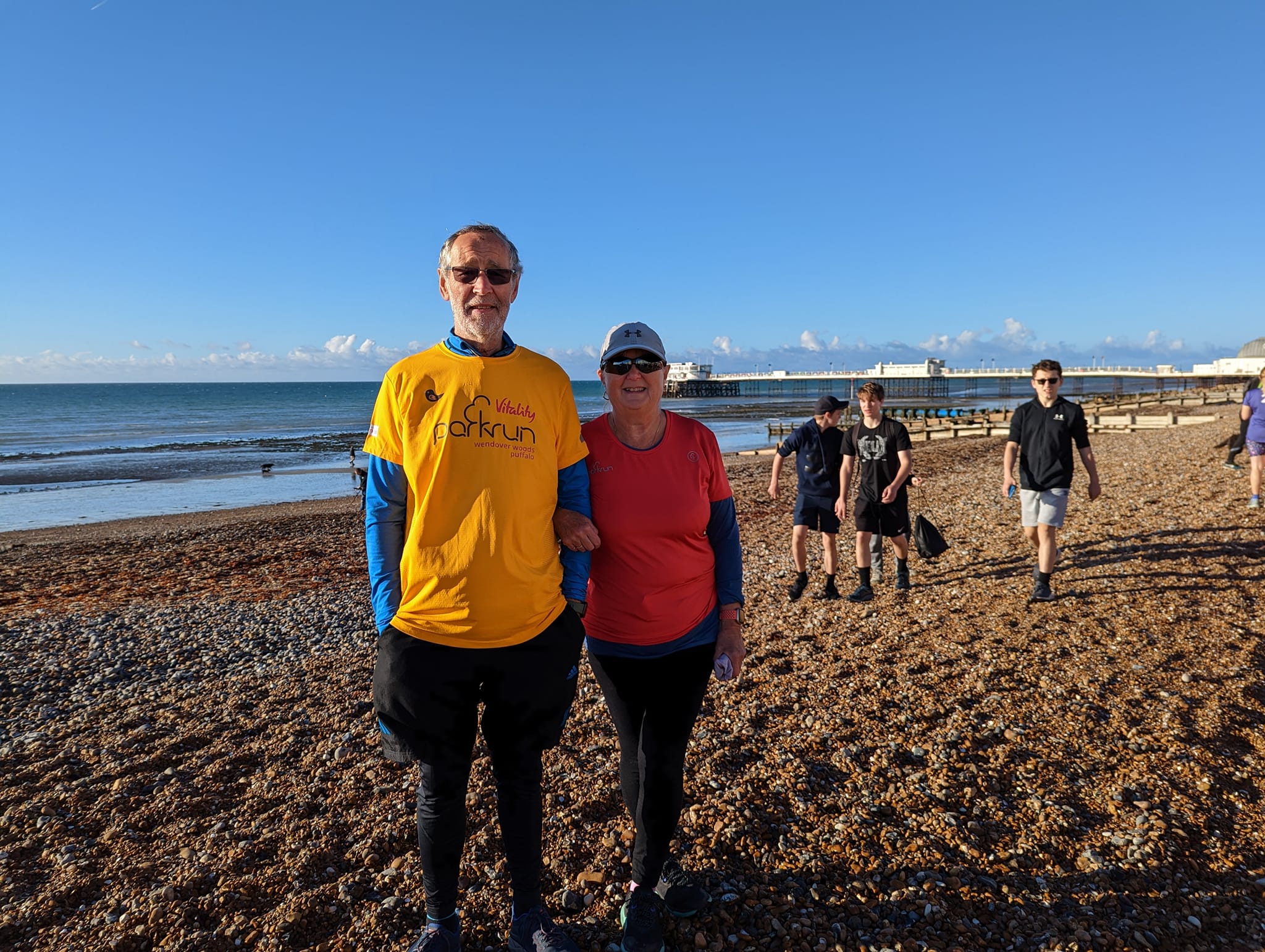 Auckland NZ. Although not really a parkrunner as such, he was persuaded by Lesley to try out his home event when it first started a couple of years ago. At around 47 minutes, he managed 2 events by fast walking but found the 8am starts a bit challenging! No excuse now though as a more chilled 9am start saw him shuffle with Lesley at Worthing in a decent PB time of 44 minutes.