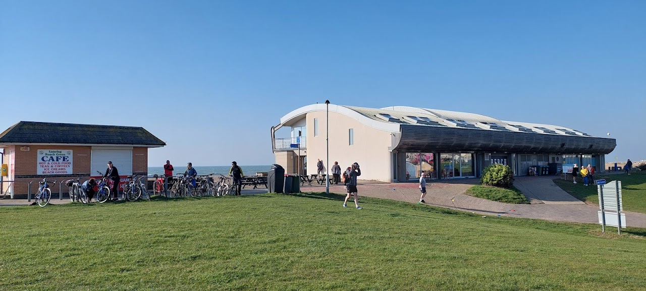 The new build sea-front tower block creates a hurricane like gust that almost has us dismounting........but heads down and we arrive at 8:45 in time to lock our bikes, greet the run club in time for photos, briefing and off! I still have my dicky groin but it's not so bad and I decide to 'take it easy' today. The now strong Easterly sees to I stick to my plan straight away. After Worthing, Lancing seems much more relaxed with around 150 starters there is no big gathering but then again, it is a narrower path that follows the 'out & across the green then back' before joining said path! Having done this parkrun several times ( 2019 the last one) The out and back was familiar, sea on the right, turn-a-round at the orange beach hut, sea on your left and just before The Perch, down hill to the finish! Not a bad finishing time for my dodgy pull-thing with enough strength to cycle back to Coast cafe for the usual coffee and cake where the Worthing parkrun were still not quite packed up.