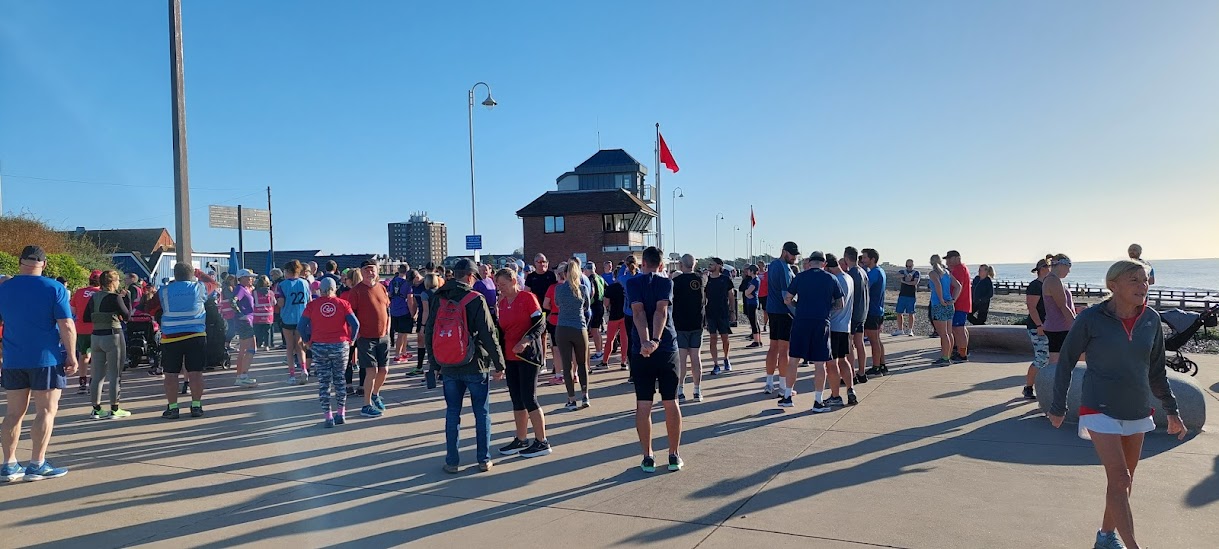 We left home early, arriving and parked up by 8:15. Greeted by an almost deserted prom where we took a warm-up shuffle to the loos by the lake and back in plenty of time for our 1st timers briefing. Nice crowd of around 300, pretty similar in numbers to Worthing and a well organised team of volunteers that had the benefit of a prom-shelter to keep all their gear giving protection from any inclement weather the exposed prom may throw at them plus a small stage for the briefing guy who had the aid of a superb PA system that could be heard easily, even above barking dogs and chatty runners! The narrow start between bollards was almost overcome by a staged staggered start from >20 minutes through to <>40 minutes. A good idea but it still took 30 + seconds to pass go! We set off at our usual pace, finishing in 35 + minutes. Nice cafe right at the finish with good ambience, views, coffee and baps.............only downside was the ridiculous answer to a request to swop the poached egg for scrambled.." sorry Madam but we cannot exchange items from the menu on weekends"! Considering they had other items on the menu that included scrambled egg it left a 'bad taste' and we decided to downside our breakfast request to baps, that were £6:00 each less.......hey ho their loss!
