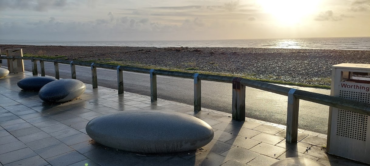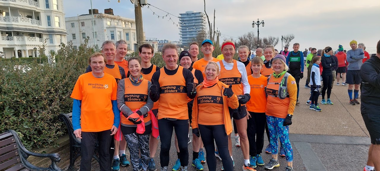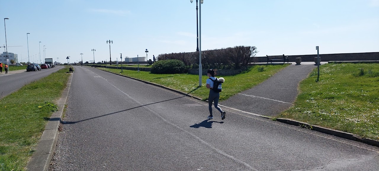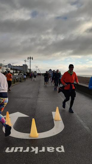 Friday morning shuffle around the seafront and back through smart bungalow-ville of Ferring when a 'pull' occurs in my left groin. I slow down to a walk back for the last mile. That's it for parkrun tomorrow and I promptly volunteer my services to marshal instead. The day is chilly but dry as I take up my position at Worthing Pier to clap and encourage.