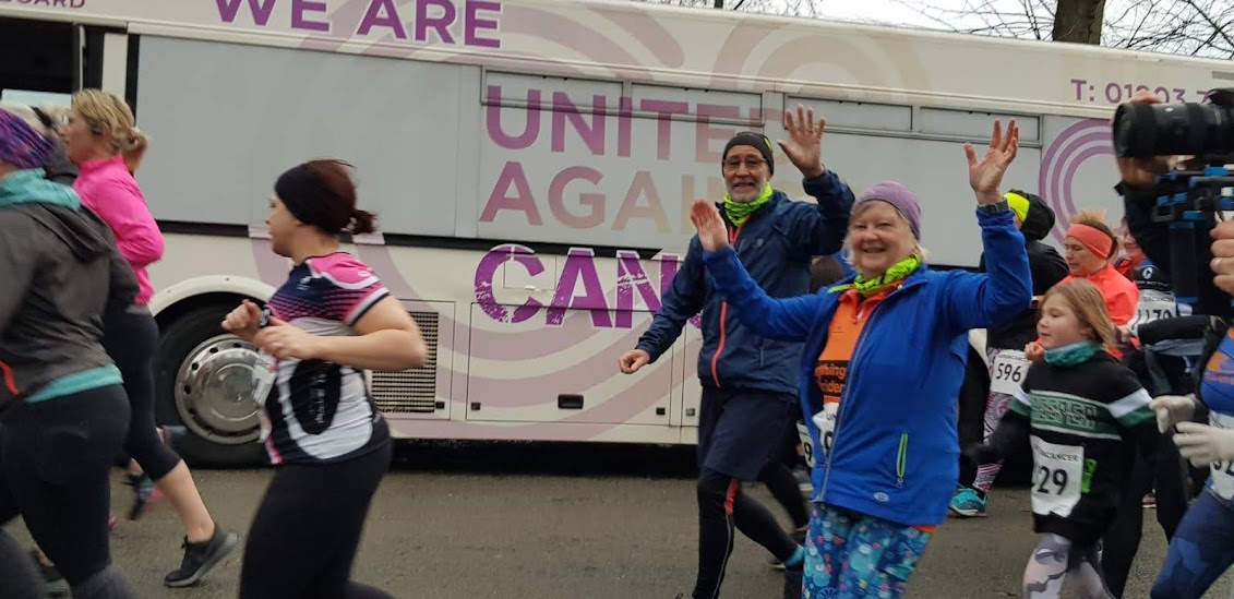 We soon spot a few 'Striders' with their distinctive orange vests and get down to do the obligatory photo shoot of around 10 club runners, not an easy task as they have pop off for a loo stop and do their warm-up routine. Following the briefing we are off on a nice steady trot at the maximum Lesley can cope with. We do the up and back and up before I am told to leave her behind and do my own thing. I shuffle past a 'support the lifeboat' T-shirted lady who apparently was going to do a club-swim after her run! Brave or silly, I have no idea. I finish in a reasonable time and cheer Lesley over the line, about 1 minute behind me. The Striders are all there to cheer her on and we gather up our warm gear to walk back along the riverside path to one of the Strider's trendy riverfront apartment for a nice post run chat with a post run coffee and cakes! We take up the offer of a lift home and the bright and chilly Saturday morning ends very nicely!