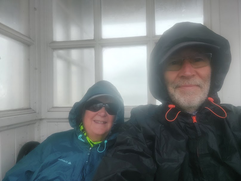 Our dress sense was captured by a parkrun photographer that soon went 'viral' on Facebook! If I start at the bottom, extra warm trousers that we purchased from a well known Japanese shop in Oxford.......brilliant, no wind penetrates and no heat loss, waterproof walking trousers, Runderwear long sleeve base thermals, fleece, waterproof trekking coats, ex-Moonwalk (London) poncho, high-vis, gloves, but removed as we were doing 'tokens' and dexterity is a must for the 266 slightly mad crowd of parkrunners. Peak caps with hoods-up and in Lesley's case, as she was customer facing .... a mask! It all went very smoothly with Mike parkrun, a frequent RD at Worthing, welcoming the soggy parkrunners to 'sunny' Worthing and we welcomed the even more soggy group, back with their tokens! Even though a fair-few looked cheesed off, they at least turned up and many thanked us for volunteering in such awful weather.............shame really as Sunday was the exact opposite with a chilly, fresh, cloudless sky, perfect for running but hey-ho!