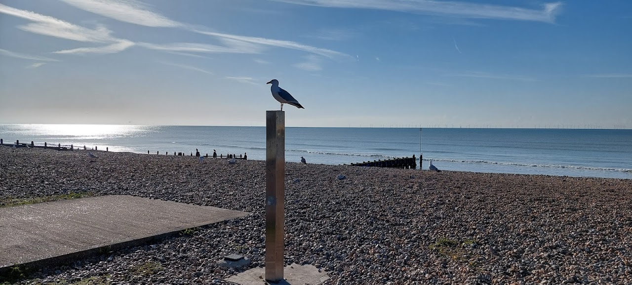 Back to Worthing on another glorious morning, so good we cycled again. The breeze was gentle and the views along the prom and out to sea were wonderful, if not, a bit hazy today.