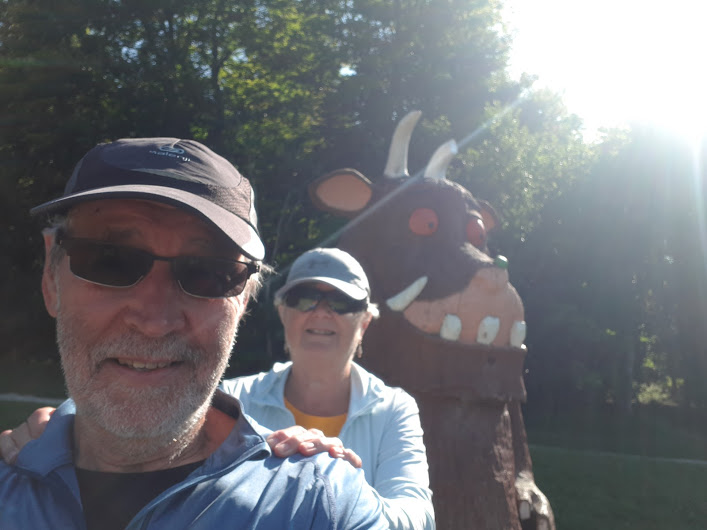 Then it was Whatsap posting, as requested by the core team, pictures of us and tree and us and Gruffalo. So a funny week all-in-all. parkrun HQ with their optimistic start-up programme in late October, Boris with his boisterous but pessimistic reversal of rules to 'groups of six' , parkrunHQ hurriedly publishing that it won't affect their decision but..........with the caveat that things are very fluid and could change. That seems how we are all looking at the bigger picture at this moment with us in no particular hurry to look at anything more than week on week to plan things. Walks, runs, holidays, Christmas.........