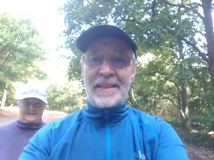 It was very OK, not fast and not slow, no dramas, comfortable but challenging, not too overheated and were still able to walk unassisted to the cafe, to sit outside in the sunshine and soak up our solitary company, very un-parkrun like, with no noisy throng from the excitable finishing atmosphere we still just remember! We took the beautiful long walk back around the course and then down The Snake to wind-up a lovely morning before the unfavourite chore of packing the car to take the 2 hour drive south to our static for the next few days of respite. The core-team's Whatsap site had burst into life over the last few days following speculation of a restart and then the sudden re-tightening of our movements and visits. Covid numbers are rising exponentially again with the recent return to both schools and workplaces. We are all anticipating things will not get any easier and are waiting for perhaps a further Boris announcement in a few days that may even curtail not-parkrun and our other outing activity of the Ramblers. Talking of which, we had a Wednesday 6 mile ramble with 8 others so the 10 of us ambled through the woods, nattering and banana-breaking.......at a sort of social distance for 3 or so hours. The rules seem to be crazy as we could walk in a group of 30, as agreed by the powers that be, safely and legally. Our local group have decided to cut that figure to a maximum of 10. We all think this is the absolute maximum we would all feel safe and not look too disrespectful to those who are restricted.....to 6! It was very noticeable that with this 'rule of 6' we felt we were ( surreptitiously )being counted by those law-abiding folks that passed us! Everyone was being very 'British' of course and greeting & smiling but you could feel there was soon to be a conversation to be had as soon as we were out of earshot! Strange World............getting stranger.