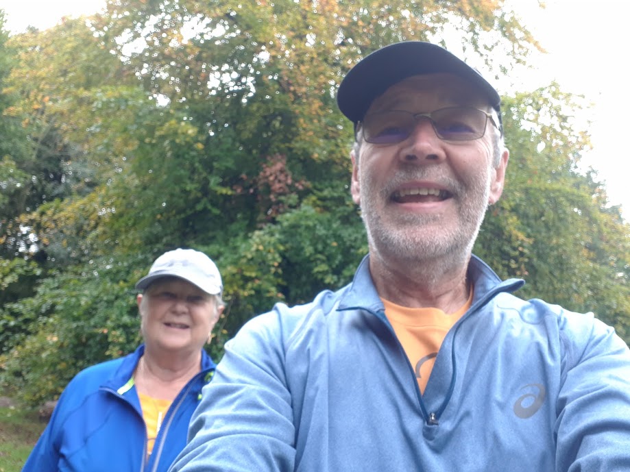 Freedom not-parkrun 18 and Lesley with her aches and pains was to have a 'good day' but the morning walk up to the start and a jog from the 'Roundabout' gave no indication that our previously discussed tactics would be used so early today!