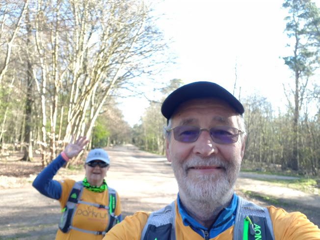 not parkrun 52 is an infamous number that means this week we 'celebrate' a whole year of this Covid thing completely disrupting our lives and causing illness & death, job losses, bankruptcy, furlough and mental health issues as well as home schooling and general loneliness & frustration of not meeting up with family and friends. Our national debt is almost incomprehensible and must surely take years to pay back. We haven't been to shops and supermarkets, just relying on Amazon and 'click & collect' . Staying local has meant we know every path in Wendover Woods.......off by heart. No surprises any more during our daily exercise with the exception, just lately, of our weekly not-parkrun route! However, now the dodgy trees have been lopped and felled, the full course is open for us to 'enjoy' We had set ourselves a mental limit of 1-year of consecutive runs and with the exception of missing a week just by one day, we achieved in fact we always ran, even in the early days of the pandemic when we were released briefly and stayed in or static near the coast! This gave us the 5km along seafront or 5km around Hove Park. So now with a whole year passed the pressure is off of our run in The Woods, lockdown will be gradually eased and talk-around-town is that parkrun will start up again in a couple of months. We decided now we won't put our weekly mugshots on the 'core-team' WhatsApp page and just run the circuit.......when and if, we feel like it! So back to our 1 year run.