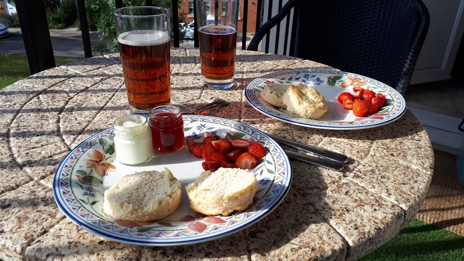 A promise of a heatwave bought us out early Monday morning after we agreed of spending too long on the shed building project but prior to this I had a nice surprise early Sunday the day before. It was a gift, by courier, of goodies from eldest daughter! Beer and cakes for a special Fathers Day to be taken on the sunny balcony. Cream tea, well, no tea just beer and scones with jam & creme. Ideal prep for tomorrow morning's run.