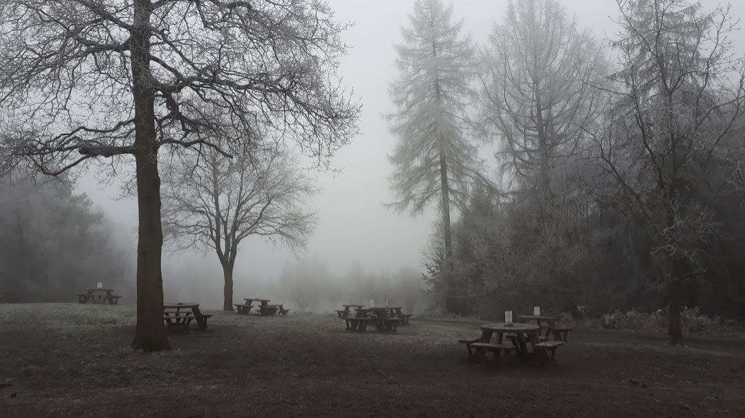 with the daily figures levelling off but not falling yet. It's week 36 of our weekly runs and to add to that we have volunteered to 5km walk or run, every day of the lockdown 2 ! An easy enough challenge with the woods on our doorstep but somehow the weather has made it less than 'fun' on some days, in-fact a look at the weather app and discussions over our 1st cuppa is the order of the day.......every day. Shall we go for it early before the rain or wait till late afternoon before dark? On one memorable day the rain started overnight and was still there the next evening, so, just tog-up with waterproofs and grin and bear-it. Today was sadly no different. Not-parkrun day and the Met App showed a window at 8am till about 10am before rain for the rest of the day. This came with a slight put-off of an overnight frost meaning it would require some extra layers and extra willpower to get us up to the start. A warm selection of long thermals, hat, gloves and a spare lightweight pac-a-coat for afters and we were off up the hill to The Start-post.