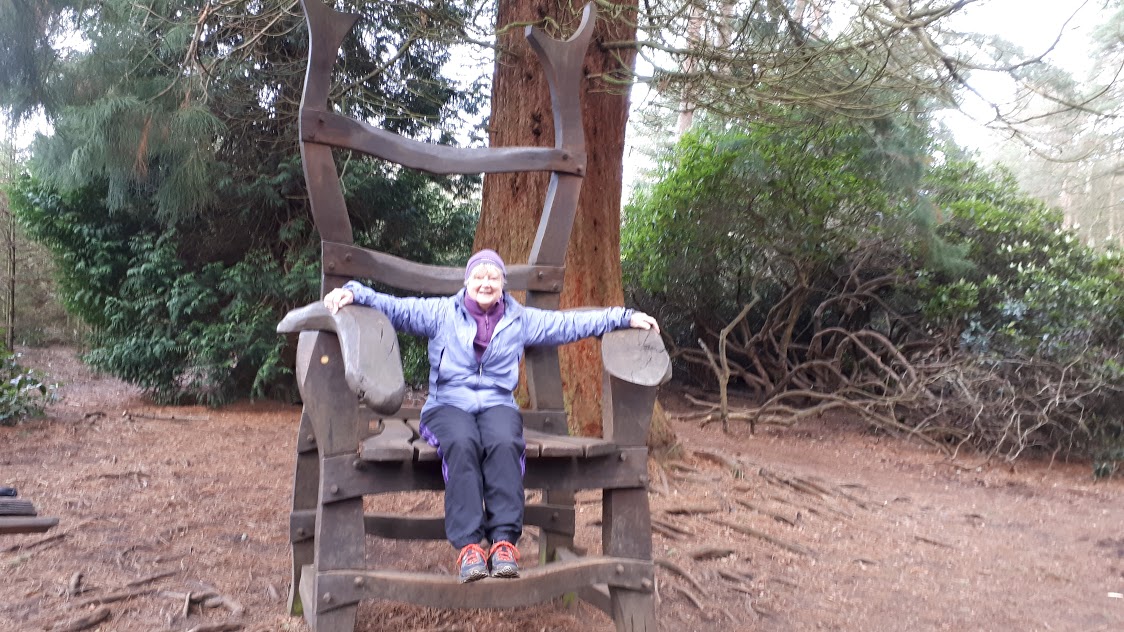 It was a left turning path all of the way with marshals at all turning points. In between were 'undulations' that comprised of gentle downs, gentle ups, tree roots, puddles and mud followed by a steep down and then a steepish up. Back through the finish then the start and do it all over again. My aching left leg couldn't keep up with Lesley's 'nearly over her cold' but I had glimpses of her for all of the way. She was just finishing as I approached the last 'left' before the home straight, across the grass. A receptacle finish in just over 38 minutes, place number 222 and Lesley in the mid 37 minutes in place 209. There were 257 in total and I was 3rd in my age group. Beaten (easily) by Paul, one of our Aylesbury Ramblers who in my defence runs a lot and is entered in the Berlin Marathon this year, some 23 miles further than I like to run! Breakfast was nice with me munching through a 'disgusting' full English in a bap! How do they do that? In fact, how could I eat that? To help it ease down and to get value-for-money from the £3 parking charge, we walked a large loop of the park and left a midday after spotting all the artefacts dotted around the park that we missed on the run. Its an excellent park and Rushmere is well worth a re-visit.......in the summer perhaps!