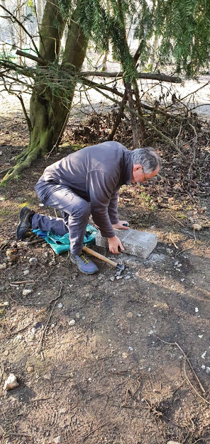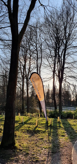 Friday the ED and I raised the new flag near the car park path in brilliant sunshine and did a little work on the new funnel stake blocks! In just a few hours and a little pre-parkrun sleep I was taking the gear out of the shed....and later putting it away....and I held the heavy megaphone for the briefings volunteers, but these are not volunteer roles so I had to run today! The annoying early morning rain disappeared by the time we drove to the woods, changing to just a grey overcast morning where the set-up proved to be rather muddled. This sadly, is the usual start now in handing out all the roles to volunteers. Signs and arrows, high-vis, lanyards, first aid kits, course check runner, 2 x set-up runners and all the on-course marshals roles. 2x Timekeepers, 2x barcode scanners all with no flat-table again so it was down to sheltering on the muddy floor of the decking of the old cafe again as the green is still out of use. This means the start/finish, the funnel, timekeepers barcode readers along with the runners, supporters.......and the general public have to share the driveway......not satisfactory at all to both myself and more importantly, as she is one of only a handful of volunteer RDs, Lesley. She has a nature of only dealing with this responsible role if it is organised. At home, she sorts and re-sorts the not insubstantial amount of stuff. She prepares reminder sheets, charges watches and scanners and on the morning she is pretty p******ed off at the moment with just using the muddy floor of a disused shed to dish out the gear to the very vital role of our volunteers. However we do now have concrete blocks to put the stakes into at the funnel as the ED bought them up and drilled the holes so the stakes should no longer blow-over in a breeze tripping up the finishers!