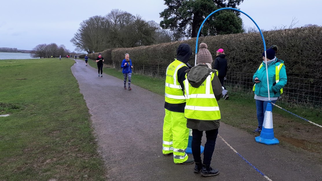 Yes It's that time of the year again a brand new decade and of course ..............a parkrun for New Years Day.......double! All hands to the deck with as many of our core team and other assorted volunteers needed to deal with an expected influx of park runners today. If last year was anything to go by we could be seeing 400 starters today! Our ED has taken a well earned holiday break and our frequent RD, volunteer, runner and globetrotter is trotting. Apart from that we are all in delegated roles by Mr Calm as he is known, our RD for the day. This double run has been organised once again by Ken from Tring who not only looks after Tring but helped us to set up WWp in the first place. Ken was RD at Tring on Christmas Day and said to us he intended to do both along with many others. Tring went off at 9am, the usual time and we followed at 10:30 giving ample time to drive between or even run the 3 or so miles between, saving the queues to the carpark barrier and the not inconsiderable parking charge! We had walked this route on several occasions and believe me it is pretty tough in dry conditions, let alone weeks of rain! Still, this wouldn't stop the keenest of park runners, would it? We both had roles around the finish today with Lesley using her dexterity skills and stamina by handing out tokens and me on stopwatch duty so I have put in plenty of thumb-bending practice.
