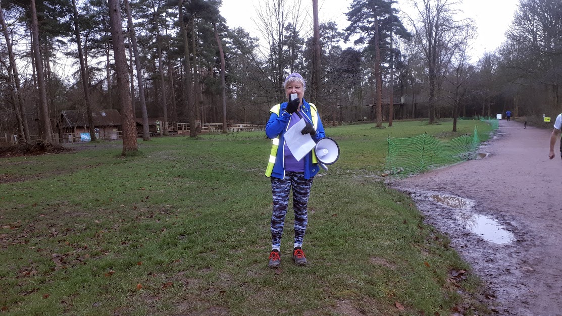 Storm Ciara is due tomorrow but that's another day as today is pretty near perfect......for early February! Its a run day for us as we warm-up-walk from home, through the woods, to the start. Lesley has volunteered to do 1st timers briefing as well as running and me just to hang around ready for the off.